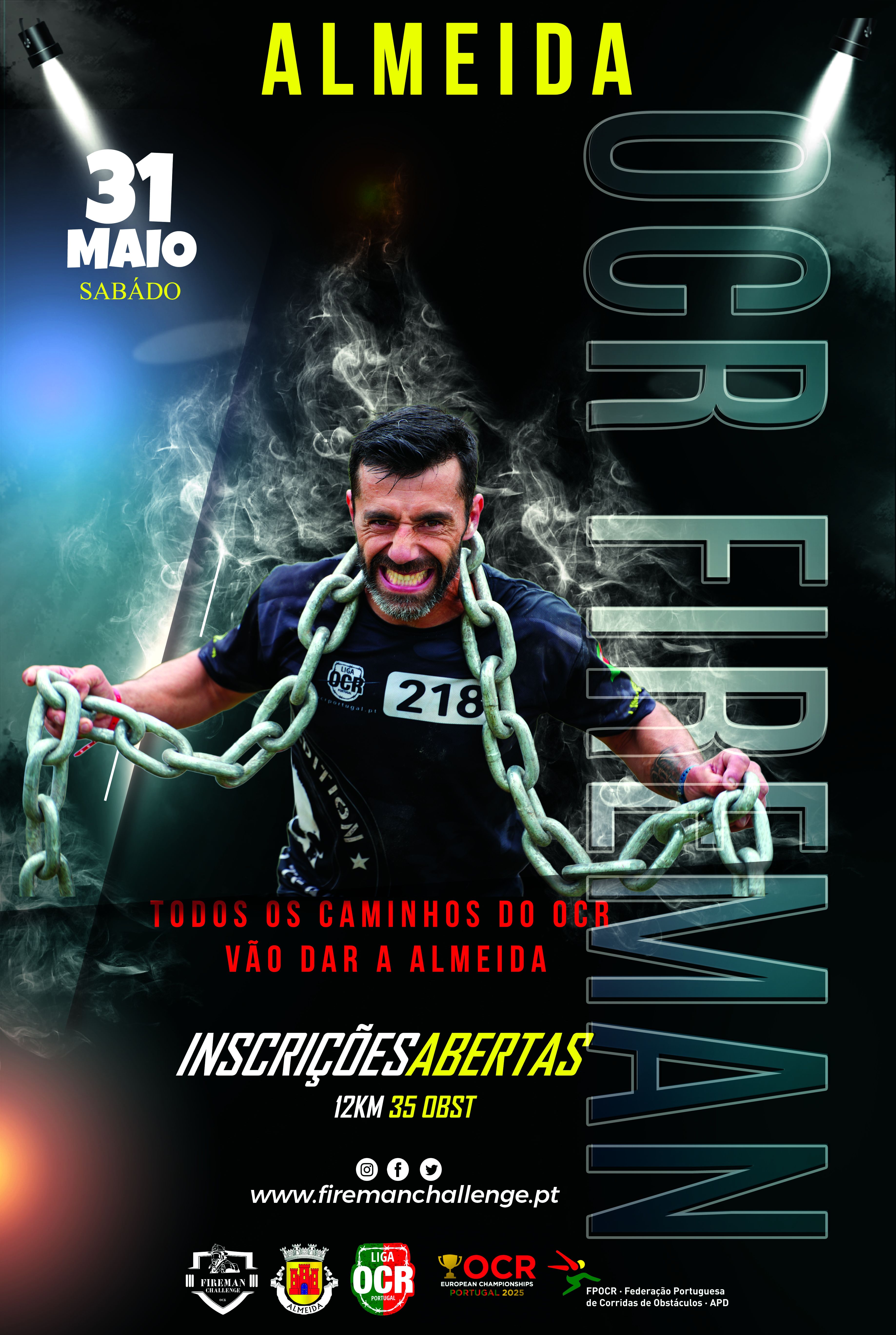A primeira Edição na bela Vila de Almeida, recheda de Histórias de lutas entre os Mouros. A sua toponímia tem tradução literal do árabe: «Terra Plana», onde pisaram os nossos antepassados. A OCR FIREMAN ALMEIDA vai receber pela primeia a Elite do OCR em POrtugal numa corrida de 12 km com 35 obstáculos que mudará sua vida. Este é o nosso tipo de corrida de assinatura, uma aventura em ritmo acelerado através de terreno acidentado, construída para o publico em geral É a porta de entrada perfeita para o mundo de OCR.